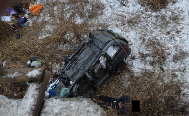 По предварительным данным, авария произошла ночью. Автомобиль, ехавший по трассе со стороны Вознесенска, превысил скорость, не вписался в поворот, снес бетонные плиты ограждения и упал вниз с моста через р. Гнилой Еланец.
