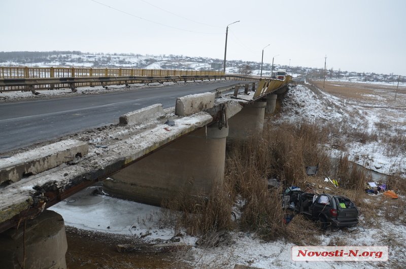 В понедельник, 19 декабря, на трассе Николаев-Ульяновка, возле Новой Одессы, упал с моста минивэн Chrysler Voyager.