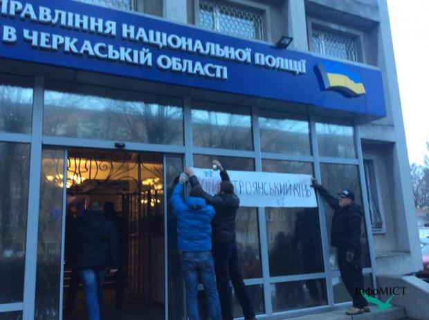 У понеділок, 26 грудня, з самого ранку представники Автомайдану, Азова, Самооборони, Білого молота і Свободи, які протестують проти призначення Валерія Лютого начальником поліції зібралися біля будівлі ГУ Нацполіціі в Черкаській області. А невдовзі мітинг переріс в сутички і бійки.