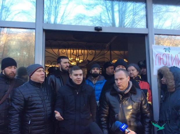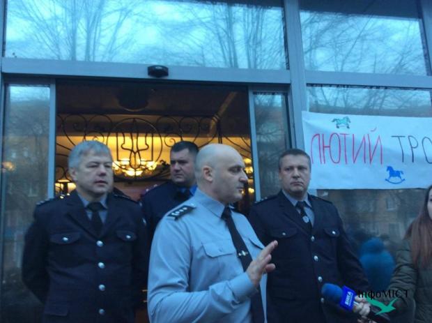 Варто також відзначити, що під будівлю управління поліції активісти притягли ялинку і шини. Лютий вийшов до активістів і попросив не порушувати порядок, після чого відправився назад в приміщення поліції. В цей час в його сторону з лав мітингувальників полетів предмет, схожий на шматок палиці.
