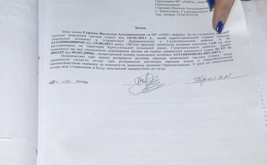 Обманутые крестьяне решили подавать в суд на агрохолдинг "Мрия". На сегодня в Гусятинском районном суде находится уже 12 дел в отношении расторжения договоров аренды земли.