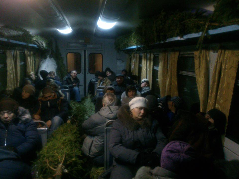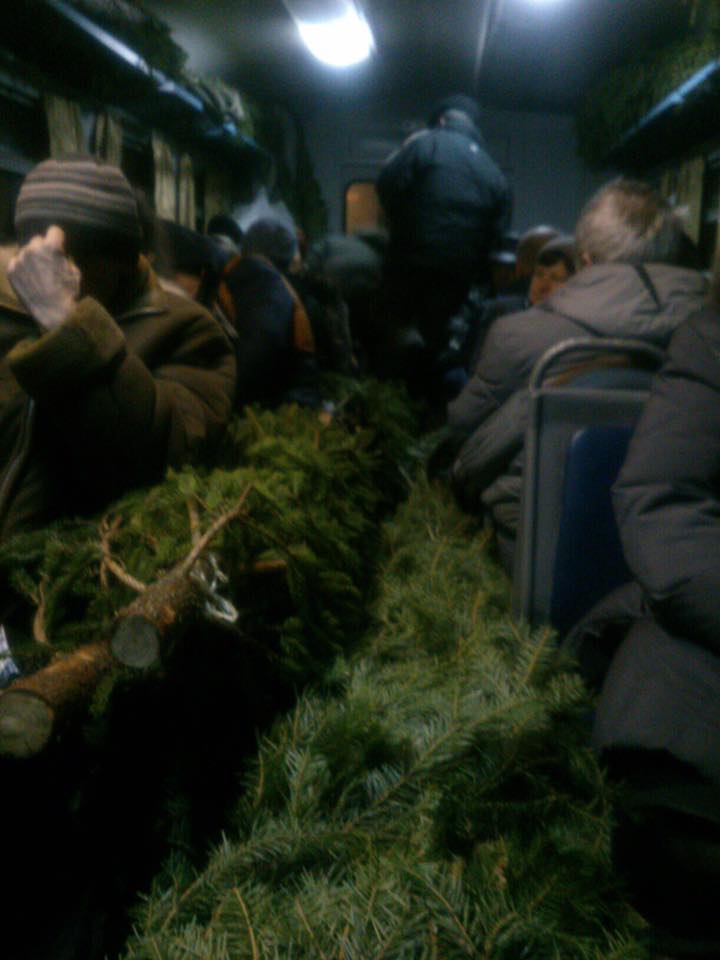 Львовские «бизнесмены» с елками вытеснили людей в электричках