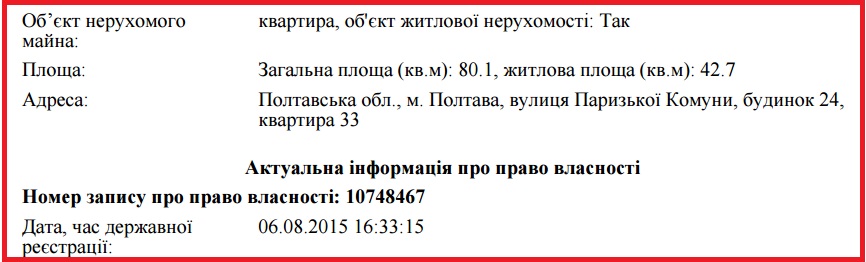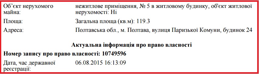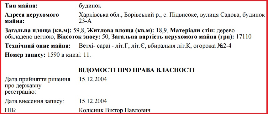 Проте, в Державному реєстрі, інформацію про дану нерухомість ми не знайшли. Зате дізналися, що у спільній власності судді та його дружини, Галини Йосипівни, знаходиться 3-кімнатна квартира у Харкові площею 109,7м².