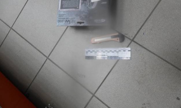 Ніж і сокиру правоохоронці знайшли в приміщенні магазину. Крім того, експерти вилучили кілька відбитків, які, ймовірно, належать злочинцям.