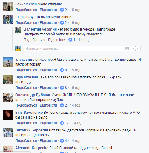 Проросійськи настроєний сепаратист з міста Павлограда Дніпропетровської області отримав по пиці від своїх земляків тільки за те, що назвав війну в Україні громадянським конфліктом. І так потрібно з усіма і всюди. Хочеш «русского мира» - пи#дуй в расею.