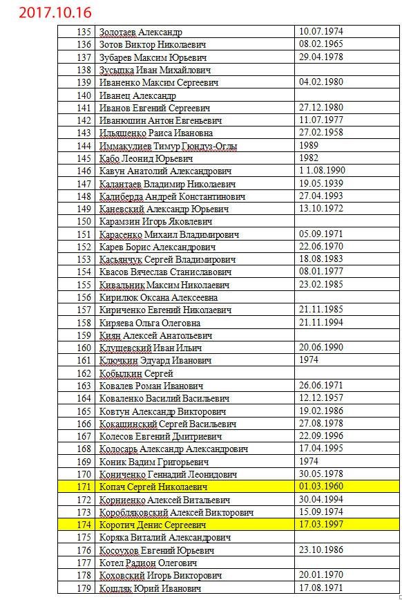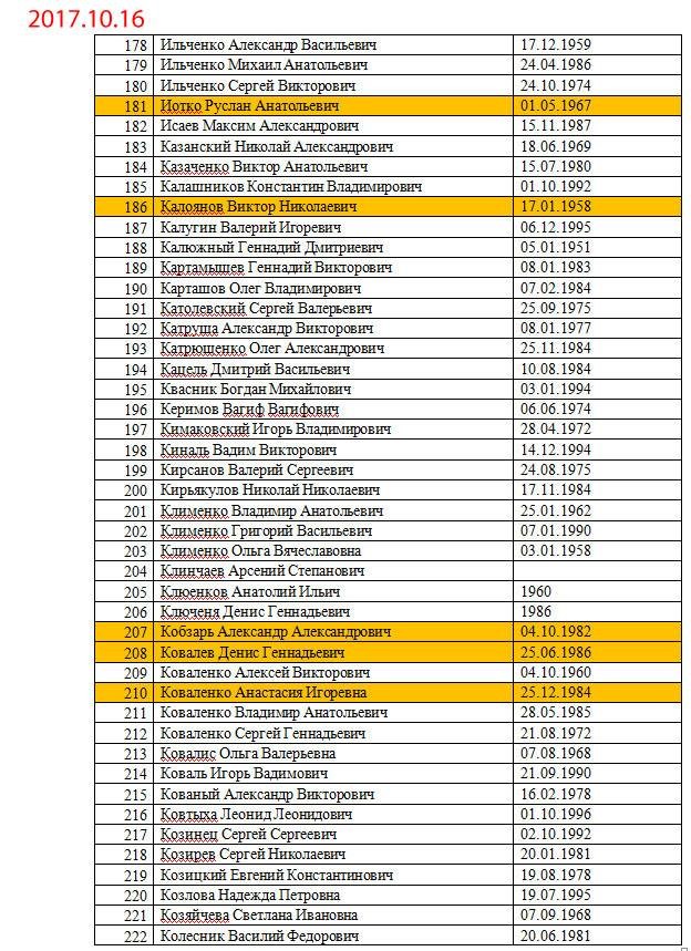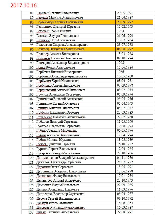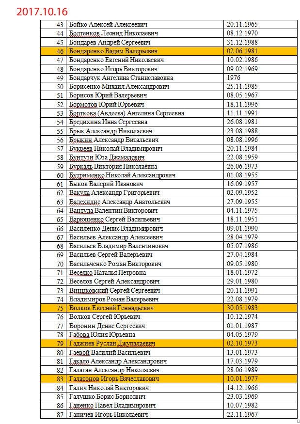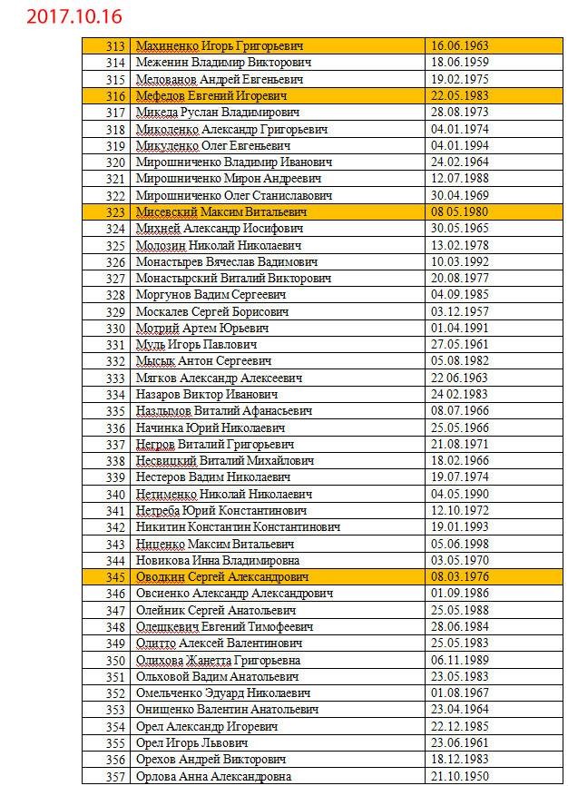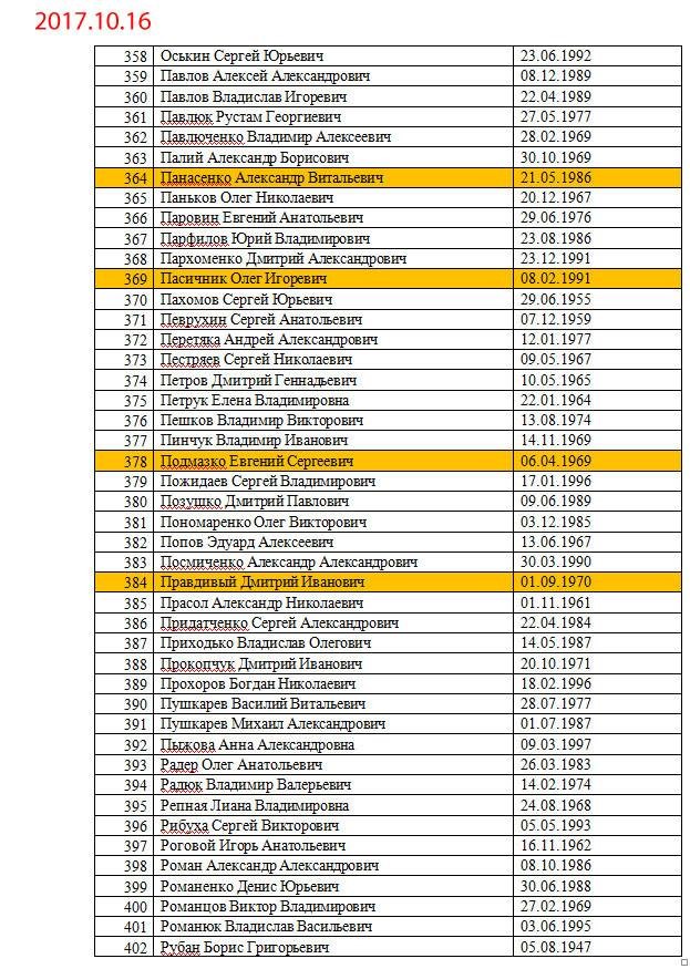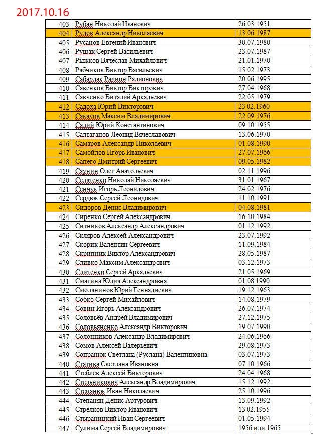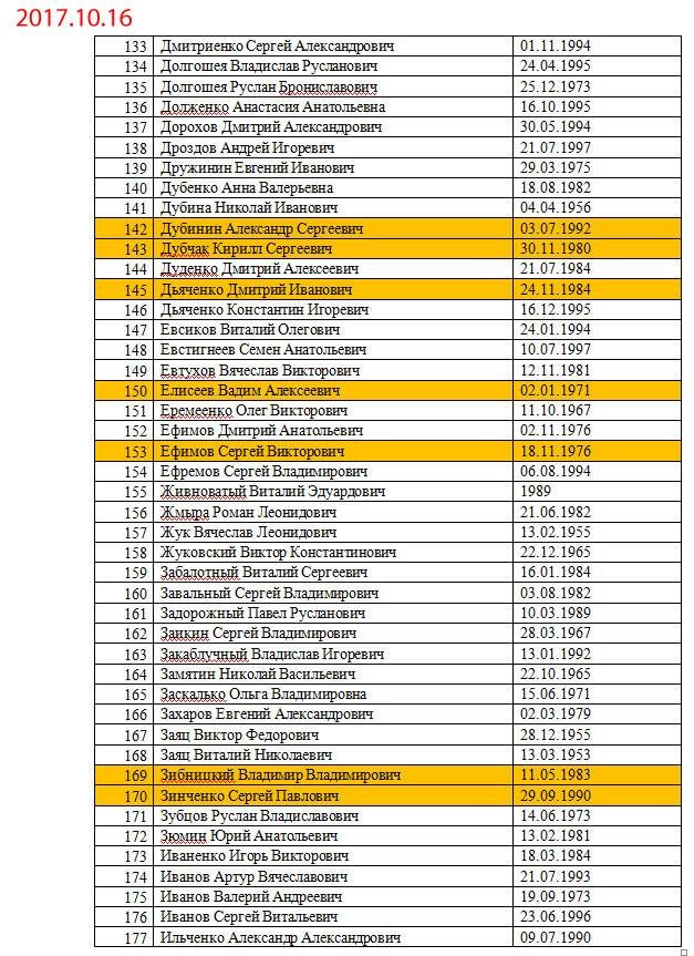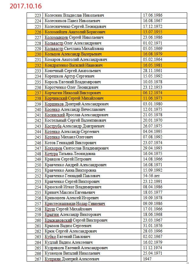 Желтым маркером выделены уже освобожденные люди.