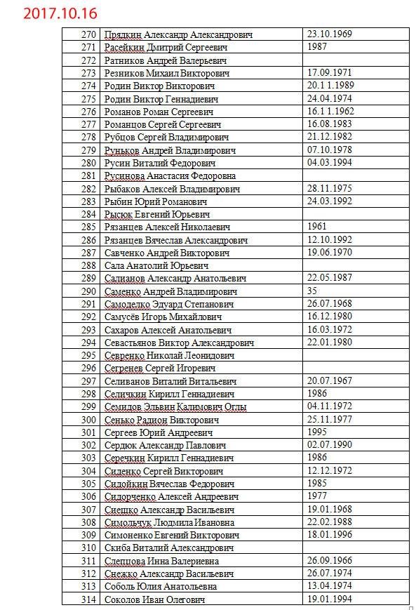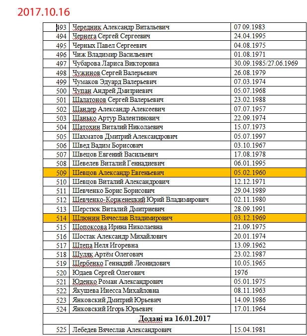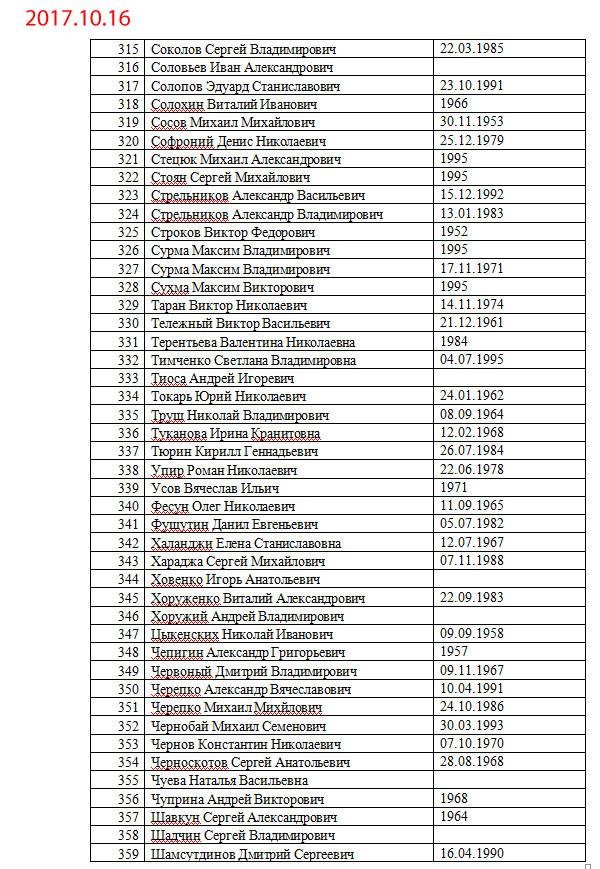 Списки, которые запрашивает представительство оккупированной территории Донецкой области Украины