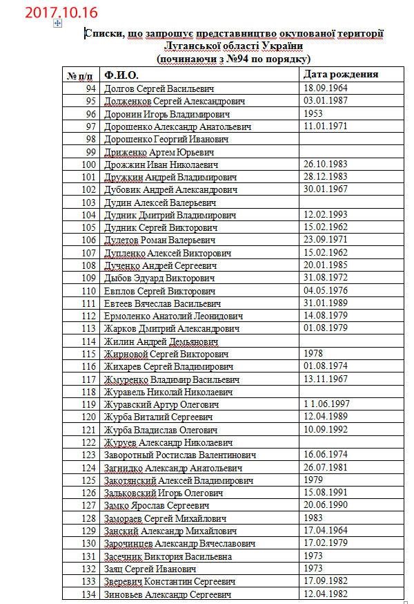 Списки, которые запрашивает представительство оккупированной территории Луганской области Украины