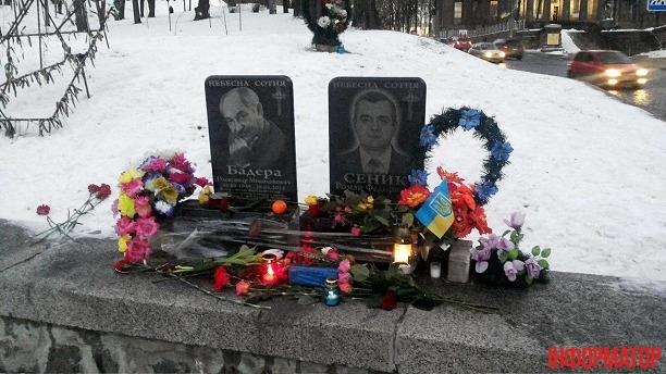 Кияни принесли квіти до меморіалу Сергію Нігояну, Роману Сенику та Михайлу Жизневському на вулиці Грушевського, там же запалили лампадки і провели мітинг-реквієм.