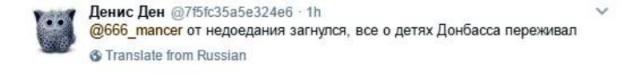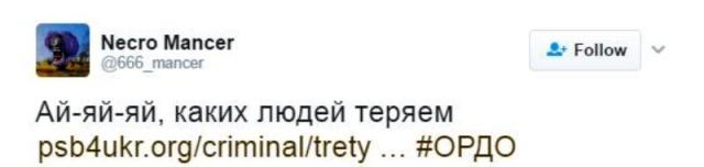 В социальной сети боевики с «прискорбием» сообщили о смерти боевика. На сайте центра «Миротворец» отмечается, что Третьяков 1973 года рождения, проживал в Донецке. В марте 2015 года он был назначен боевиками «первым заместителем министра труда и социальной политики ДНР».