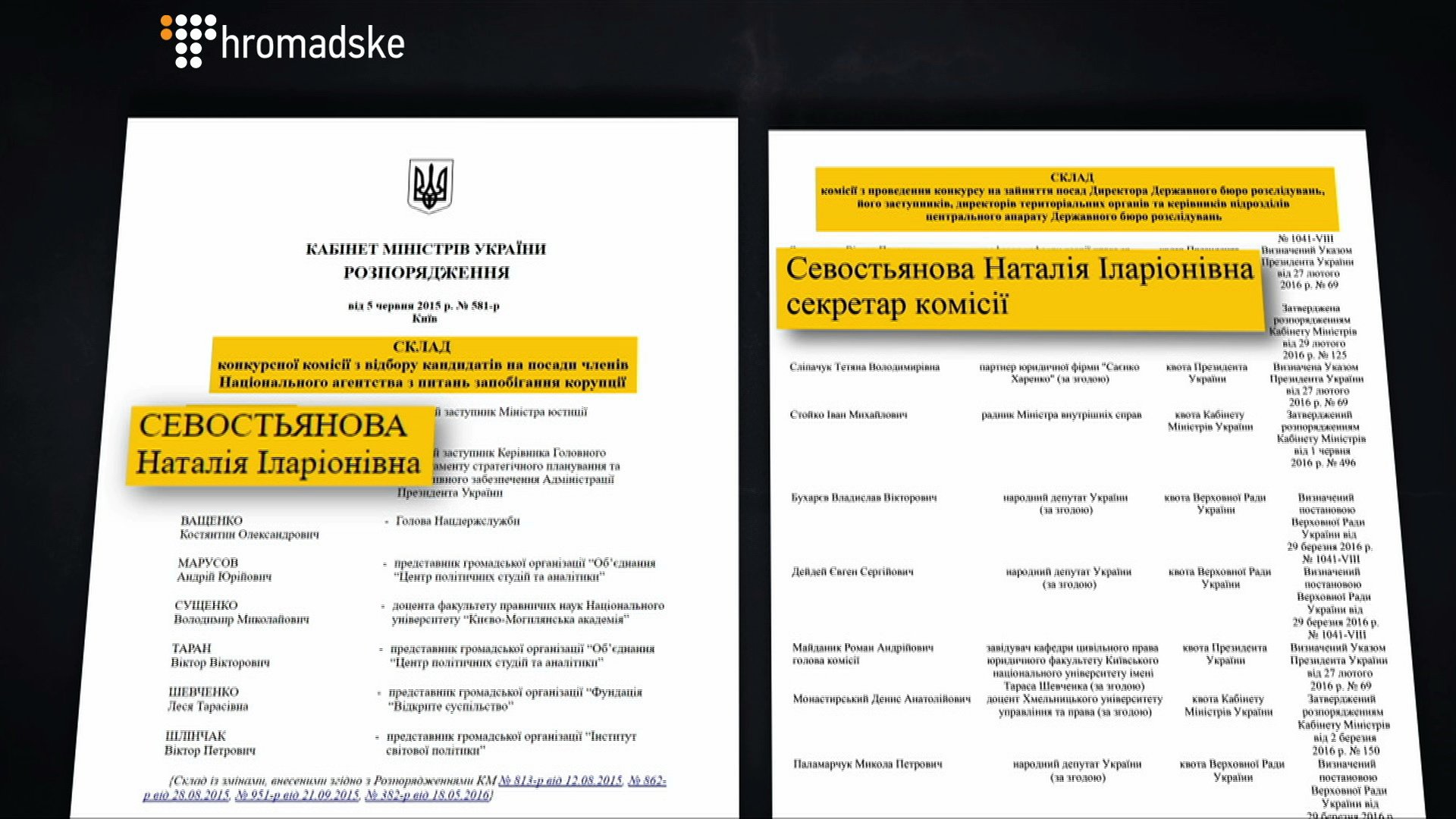 «Ми, як члени комісії, працюємо там в персональній якості. В нас немає вказівок, наприклад, в мене, як представника Кабміну, як треба голосувати чи кого підтримувати» — запевняє сама Севостьянова.