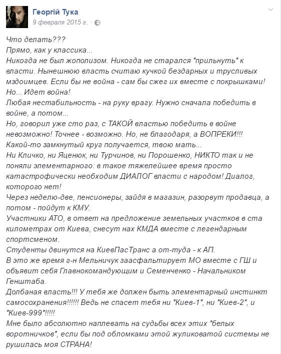 И вот. Рукописи не горят. Я, правда, много времени для этого потратила, но нашла именно этот пост. И именно на русском языке, и именно написанный Тукой. Более того, я нашла в том же феврале 15 года еще несколько его публикаций. Вот сейчас вы увидите и их.
