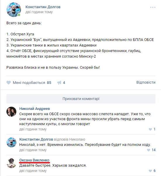 Світлини Оксани Вікленко та скріншот її коментарів виклали у групі "Патріоти України - єднаймося".