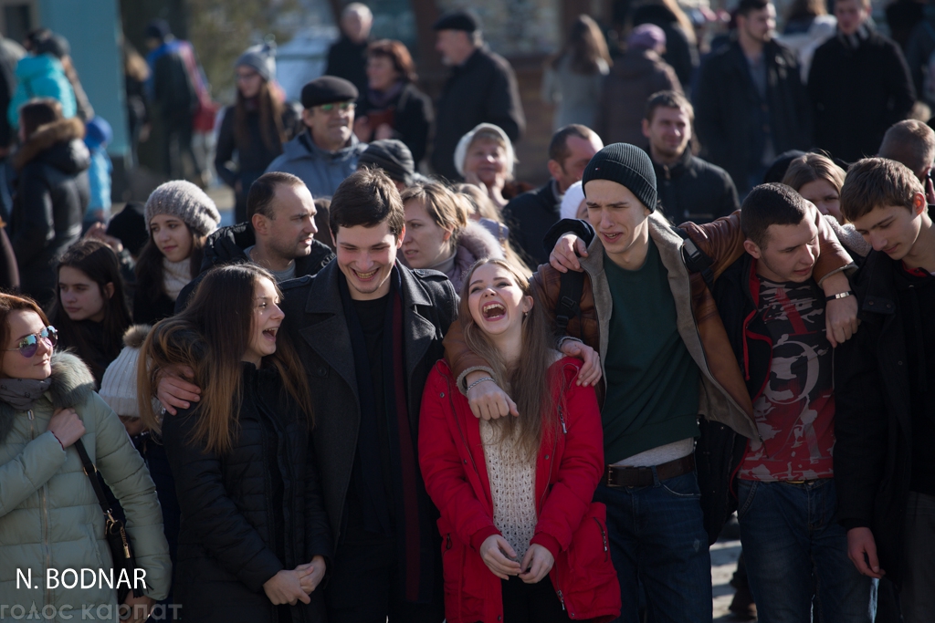 В Ужгороде на площади Театральная прошел всеукраинский флешмоб, приуроченный ко дню объятий.