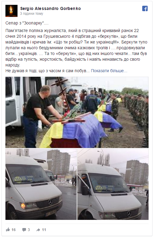 "Хай платить, або я нікуди не поїду". Не хотів я про це говорити, але вже вирвалося. "В неї сина вбили в АТО. Невже не зрозуміло. І це право їй надано законом України по всій території", – написав Горбенко.