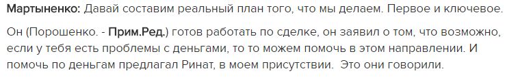 В последнее время президент Порошенко и Ахметов стали очень близки. Это подтверждает Мартыненко словами о том, что Ахметов никогда не подтвердит вымогательства со стороны Порошенко в размере 200 миллионов долларов в качестве откупных за снятие ареста с «Укргаздобычи».