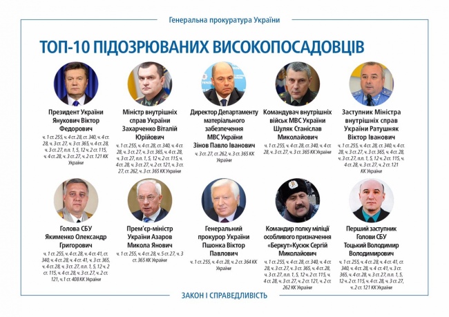 Сегодня генпрокурор обнародовал статистику по делам Майдана. Согласно ей сообщено о подозрении в деле Майдана 353 лицам. Из них 34 — чиновники, 127 — правоохранители, 3 — титушки.