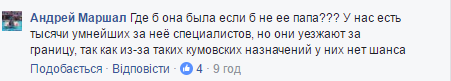 "Где б она была, если бы не ее папа? У нас есть тысячи умнейших специалистов, но они уезжают за границу, так как из-за таких кумовских назначений у них нет шанса", - прокомментировал Андрей Маршал.