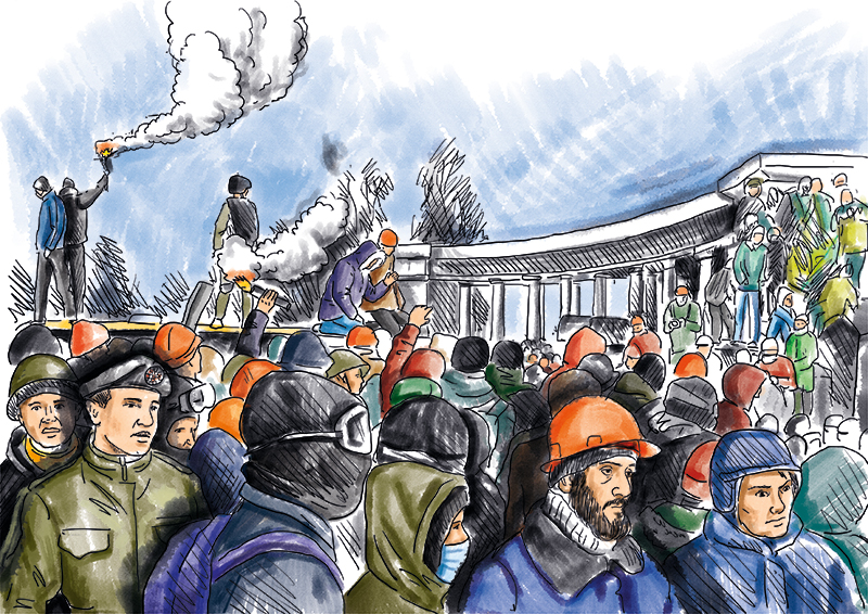 С 18 февраля начались решающие дни революции 2013-2014 годов. Это сопровождалось невиданным всплеском насилия и массовыми расстрелами. События достигли апогея 20-го числа, когда на улице Институтской были расстреляны 48 митингующих и 4 силовика. Сейчас на скамье подсудимых по подозрению в расстрелах пятеро беркутовцев: Павел Аброськин, Сергей Зинченко, Александр Маринченко, Сергей Тамтура и Олег Янишевский.
