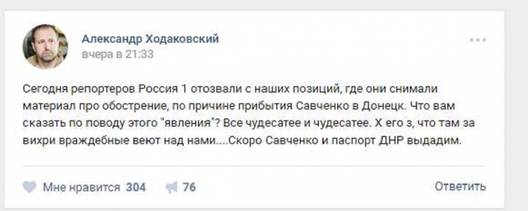 Российская сторона изо всех сил помогает Савченко пиариться