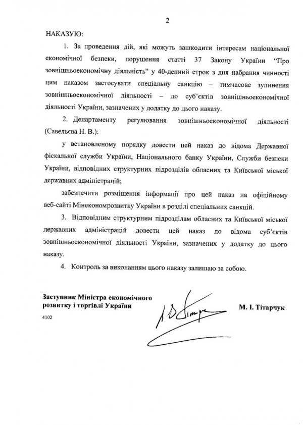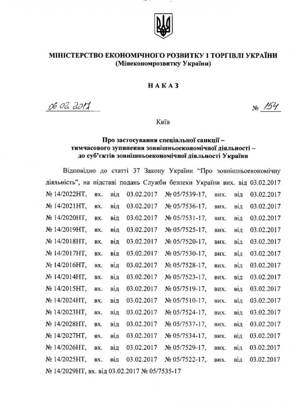 Третьим этапом стала попытка полностью остановить внешнеэкономическую деятельность 16 компаний. Это произошло 6 февраля, когда по представлению СБУ был издан приказ Министерства экономики о наложении санкции, подписанный заместителем министра Степана Кубива. Свои письма-требования СБУ сопровождали циничными аргументами: «СБУ в рамках защиты экономического потенциала Украины, а также предупреждения, выявления, пресечения и раскрытия преступлений против мира и безопасности человечества, коррупции (...) выявлен факт нарушения норм законодательства в виде финансирования терроризма ...»
