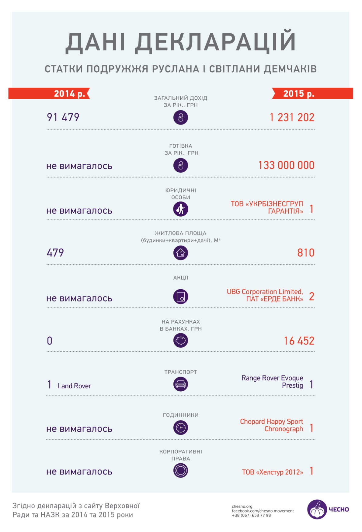 При цьому у 2014 році нардеп задекларував лише 9,5 тис. гривень свого доходу і 82 тис. гривень зарплатні дружини.