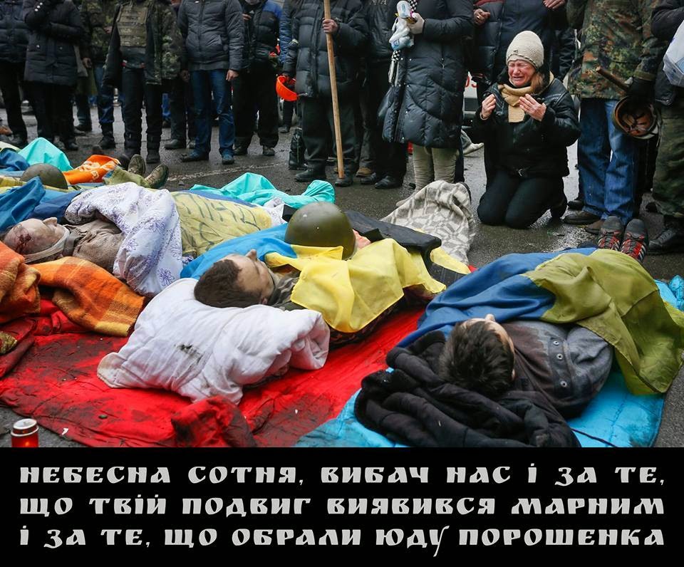 Андрій Маковійчук Ці полеглі дійсно виставлені були біля 4-ї барикади. Я добре пам"ятаю той день. Десь в цей час ми з Цвіркуном шукали серед загиблих наших,з сотні,та складали загальні списки для товаришів з інакших сотень. Тоді було багато плачучих жінок,а виживші мітингувальники,ще не знали,що скоро багато хто з них досить швидко в Вирії зустрінеться із полеглими на Майдані... Смерть в бою за Україну не є марною,ні тоді,ні в минулому,ні в майбутньому. Вона є дороговказом для прийдешніх поколінь, нагадуванням їм хто вони є,чому саме такі і за кого варта чи не варта голосувати .