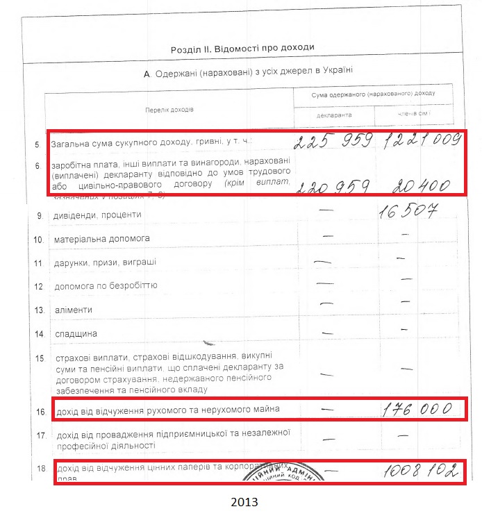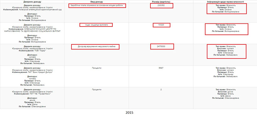 Проанализировав декларации Оксаны Эпель за 2013, 2015 и 2016 годы, мы увидели большие задекларированные доходы ее мужа. Однако как в 2013-м, так и в 2015-м годах большинство этих средств получено от отчуждения имущества и ценных бумаг, а собственно заработная плата мужа в 2013-м и 2016-м году занимает совсем небольшую долю доходов, а в декларации за 2015-й - и вовсе отсутствует. Интересно, что по декларации судьи совершенно не понятно, какое именно имущество продается, поэтому мы можем предположить, что речь идет об имуществе, которое покупается и продается в течение одного года.