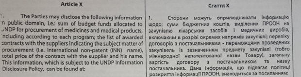 Также и общественность не может получить никакой информации по проводимым закупкам. Ст. 10 устанавливает режим строгой конфиденциальности. Практически никакая информация о ходе выполнения соглашения, как и сам текст соглашения, не могут быть опубликованы без поименного согласия ПРООН. Не удивительно, что даже народные депутаты не могут пока получить текст соглашения для анализа.