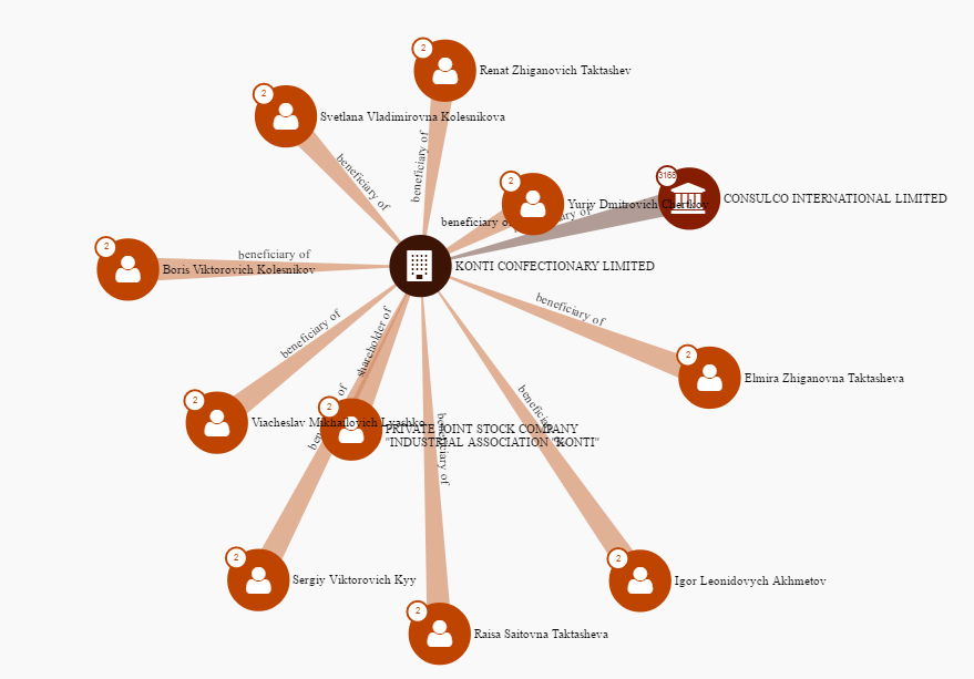 В обнародованной базе данных значится, что в оффшор была выведена Кондитерская компания «Конти», бенефициарами которой являются брат Рината Ахметова Игорь и экс-депутат, член Оппозиционного блока, которого там называют «оппозиционным премьером», Борис Колесников. Фирма была зарегистрирована в декабре 2014 года на Британских Виргинских островах.