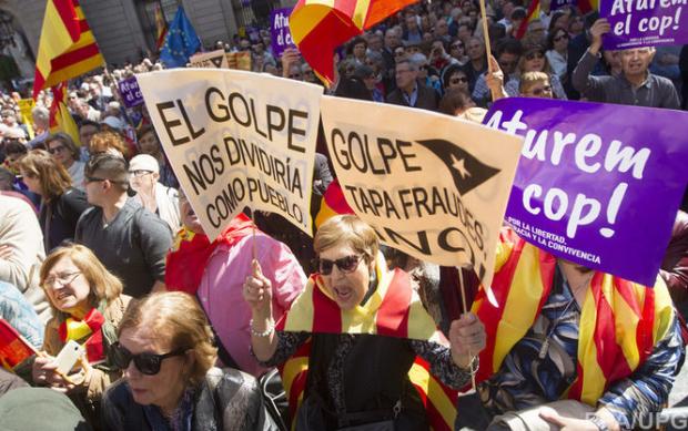 У столиці Іспанії Барселоні кілька тисяч людей вийшли на мітинг. Вони вимагають "зупинити сепаратистський переворот",.