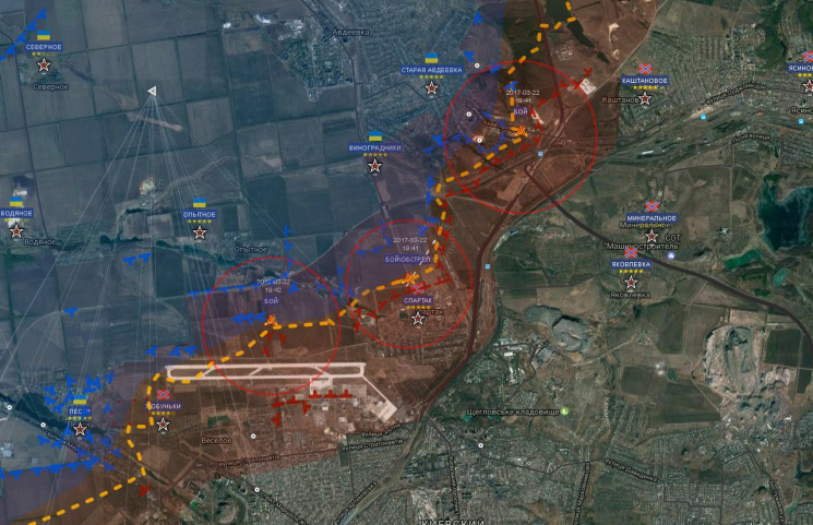 А началось все во второй половине дня из минометного и артиллерийского "пинг-понга" на северной окраине Донецка, включая ДАП. Ближе к вечеру огневая активность плавно сползла на юго-запад к Марьинке и к северо-востоку к Ясиноватскому блокпосту. Причем, на всем упомянутом участке фронта продолжался ожесточенный бой под прикрытием тяжелой артиллерии.