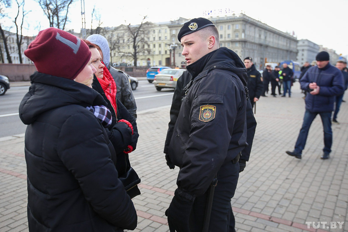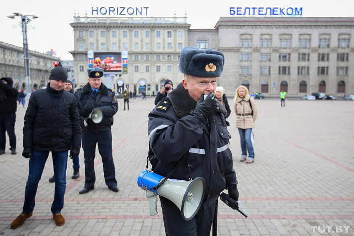 Сотрудники милиции под руководством начальника минского ОМОНа Дмитрия Балабы сначала просили всех разойтись. Мол, никакой акции сегодня не будет. В громкоговоритель собравшихся предупредили о том, что в отношении них может быть применена физическая сила и спецсредства.