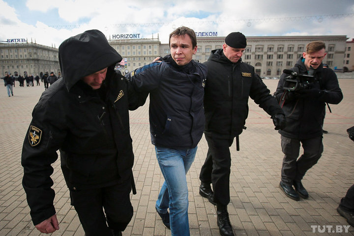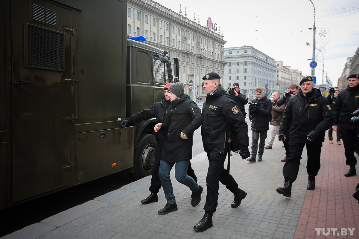 После команды милиции «Задерживаем всех!» к площади подъехало два автозака. ОМОНовцы увезли около двадцати человек. Среди них — правозащитница Татьяна Ревяко, руководитель «Арт-сядзібы» Павел Белоус с женой, журналист Роман Протасевич, поэт Стась Карпов с братом.