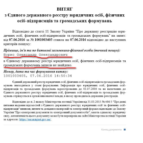Станом на 7 червня 2016 року Борис Олександр Олександрович, за даними витягу з єдиного державного реєстру юридичних осіб, фізичних осіб-підприємців та громадських формувань, не є ані підприємцем, ані засновником фермерського господарства.