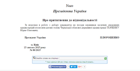 Іще у 2015 році президент Петро Порошенко виніс голові Черкаської ОДА догану за несхвальний добір кандидатур на посади керівників місцевих державних адміністрацій, проте детальних відомостей про інцидент немає.