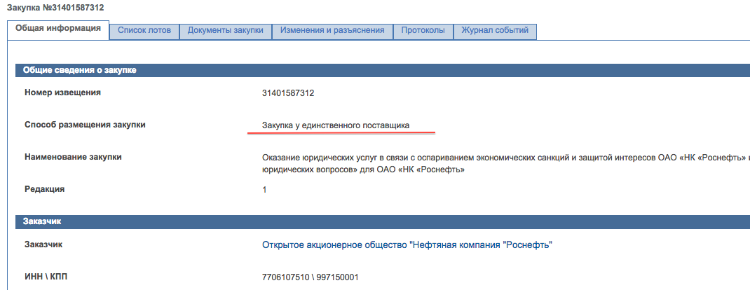 Интереснее другое, "Роснефть" проводит эту закупку как "закупку у единственного поставщика".