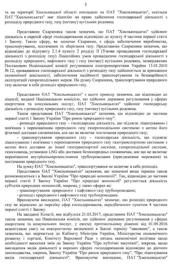 На коллегии АМКУ произошла дискуссия. Закончилась она тем, что только один из трех членов админколегии стал на сторону прозрачных трат облгазов, на фоне других двух (среди которых и глава админколегии), решивших, что облгазы все же — не заказчики, и поэтому жалоба на их тендеры не является предметом внимания АМКУ. Мол, облгазы не наделены специальными или эксклюзивными правами, а распределение газа по трубопроводам — не его транспортировка, а значит — облгазы не попадают под закон «О естественных монополиях».