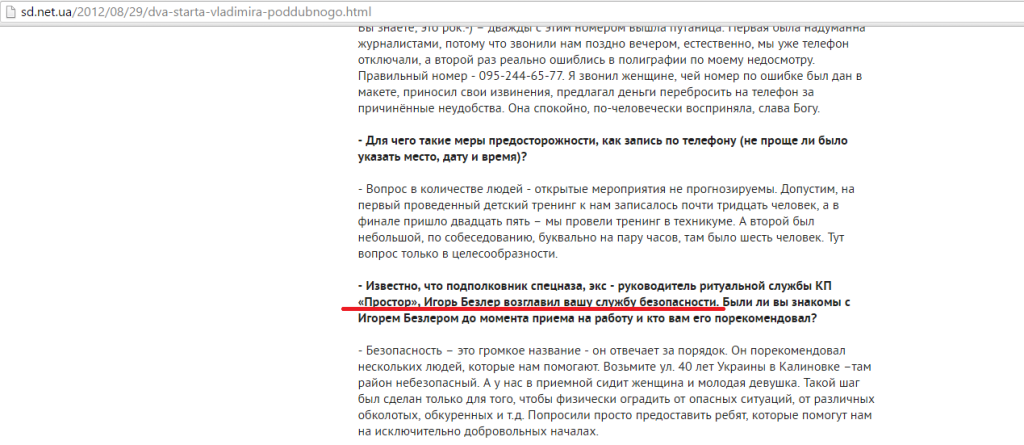 «Он отвечает за порядок. Он порекомендовал нескольких людей, которые нам помогают», — говорил Поддубный.