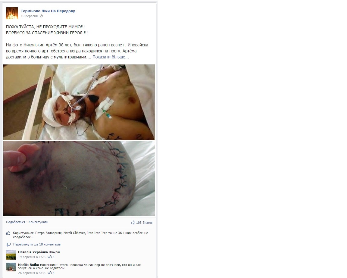 Особенно любят мошенники «помогать» бойцам АТО в Facebook. Для этого они создают многочисленные комьюнити (часто клоны настоящих), в которых публикуют душераздирающие фотографии раненых и просят перечислять средства на карту "ПриватБанка".