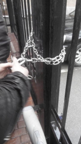 На фотографиях, которые опубликовал Ленур Ислямов, видно, как активисты сковали цепью ворота центра и заблокировали входы. На момент, когда должен был начаться «тотальный диктант по русскому языку», у офиса Россотрудничества было уже до 30 человек украинских патриотов.
