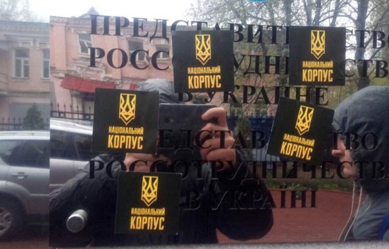 «Национальный корпус» заблокировал офис Россотрудничества в Киеве, где должен начаться «тотальный диктант»