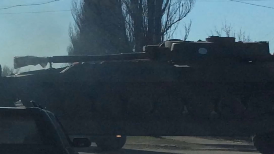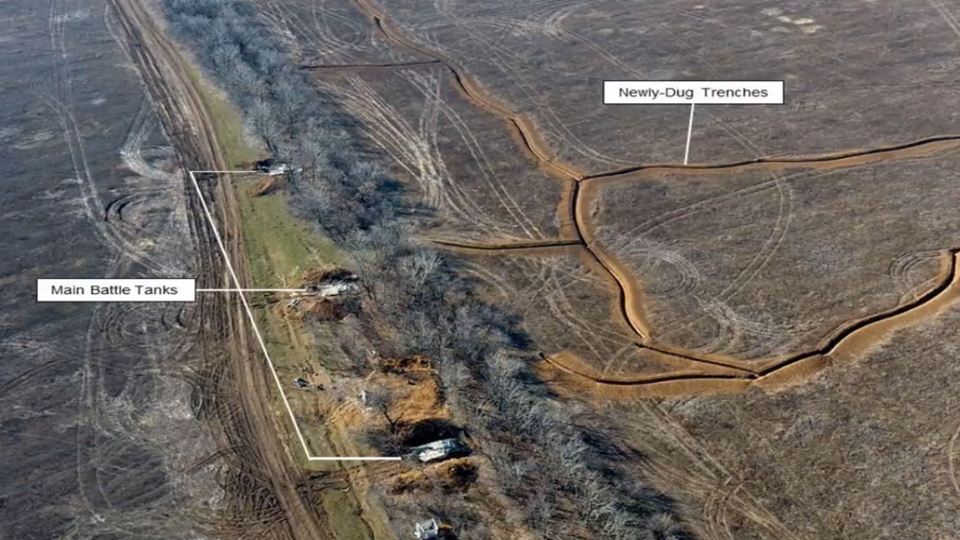 Он продемонстрировал фото, на котором изображены три боевые танки на оборудованных позициях в 2 км к юго-западу от подконтрольного т.н. «ЛНР» пгт Калиново (60 км к западу от Луганска).