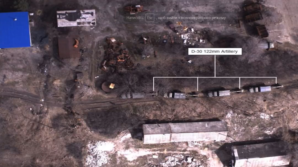 Еще на одном фото зафиксированы 4 буксируемых артиллерийских орудия Д-30 у поселка Степное (т.н. «ЛНР»), которые, согласно Минским соглашениям, также не должны там находиться.