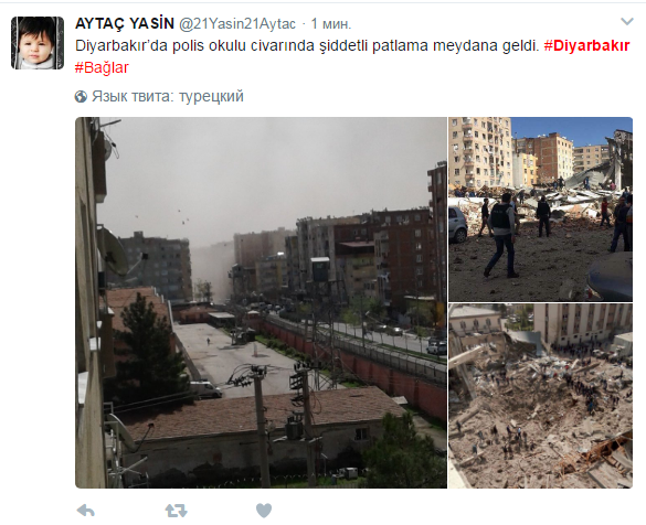 На юге Турции в центре города Диярбакыр прогремел мощный взрыв.