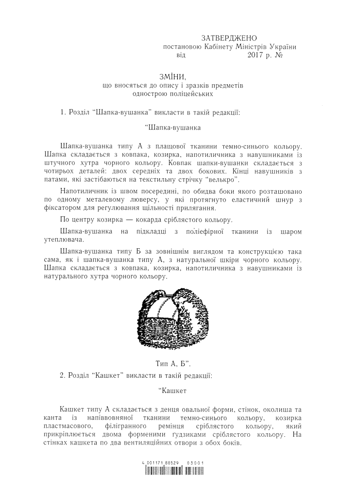 Кабинет министров поддержал постановление о внесении изменений в описания и образцов предметов униформы полицейских.