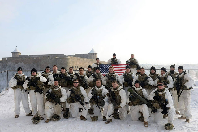 Морпехи США в Эстонии на фоне Ивангородской крепости, стоящей уже на территории РФ. 120 км от Санкт-Петербурга