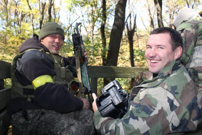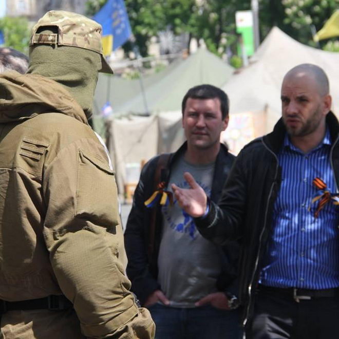 Мы можем поставить под сомнение утверждения обманутых людей. Но как следует трактовать вот эту акцию, которую Хмельницкий-Майданюк со товарищи организовали в мае? Они нацепили на грудь вместе «колорадскую» и желто-голубую ленты, после чего пошли агитировать народ на Майдан. Мол: мы за мир, политики нас разъединяют, а мы ведь – братские народы. Народ прямо говорит на камеру, что они – провокаторы.