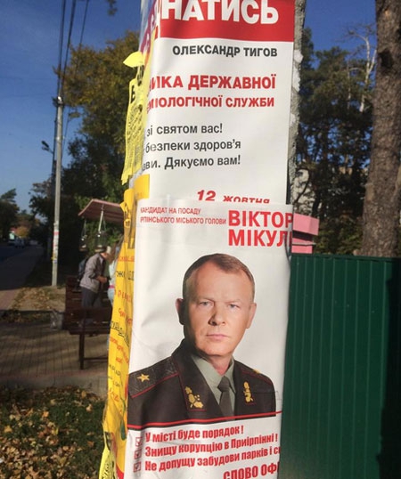 Агітпродукція Мікуліна витримана у стилістиці блоку Петра Порошенка.