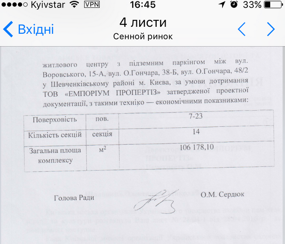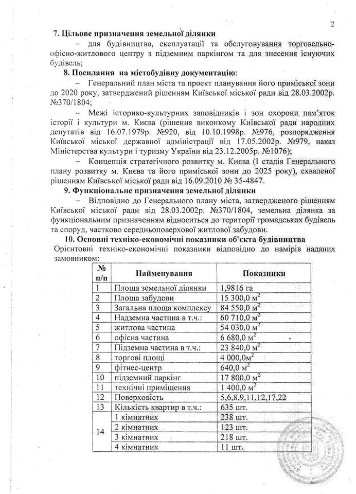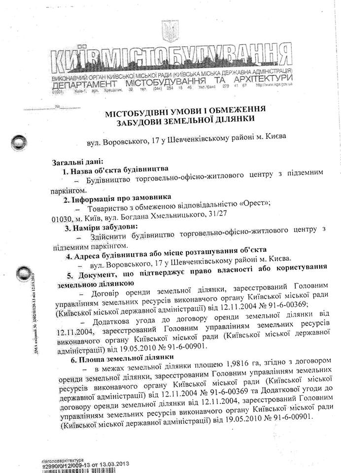 Последние ГУ были выданы 13 марта 2013 г., подписаны главой Департамента С.Целовальником под проект, в котором приоритет отдается жилью. Обратите внимание на «Функциональное назначение земельного участка» (п. 9): В соответствии с Генеральным планом города, утвержденным Киевсоветом 28.03.2002 г. №370/1804, земельный участок по своему назначению относится к территории ОБЩЕСТВЕННЫХ ЗДАНИЙ И СООРУЖЕНИЙ, ЧАСТИЧНО - СРЕДНЕЭТАЖНОЙ ЖИЛОЙ ЗАСТРОЙКИ. Все остальное в тексте противоречит этому утверждению. В ГУ превалирует жилая застройка с подземным паркингом. Количество квартир – 635. Этажность: 5,6,8,9,11,12,17,22. Сегодня в строящемся ЖК «Ярославов градъ» более 800 квартир.